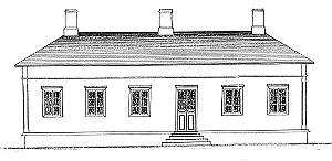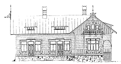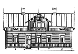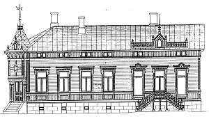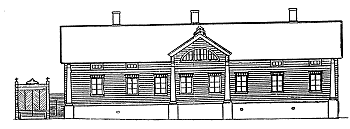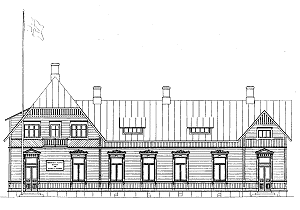 Fasad mot Brunnsgatan, nuvarande Ålandsvägen. Fasad mot norr.