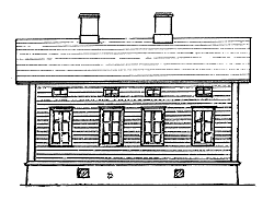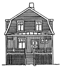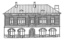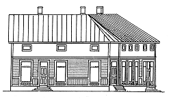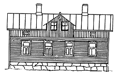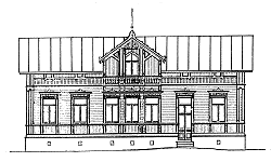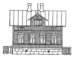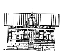 På ritningen av Emmi Enqvists hus som byggdes 1890 ser vi den gamla stilen på byggnad. På tomten fanns också ett stort uthus. Byggnaden sett från gården hade en stor veranda och från gatusidan fanns en trappa in till en butik, urmakare Hanssons.