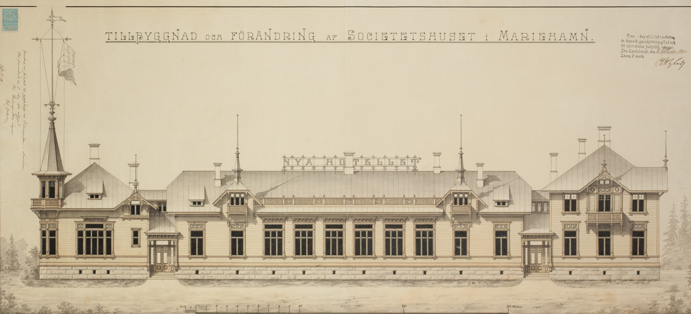Kvarter IX • Vid torget • Ritning på hotell ritad av Rancken och Strandell 1899 • Förändrings- och tillbyggnadsritning av societetshuset ritad av Ivar Lindqvist 1910 • Huset är rivet